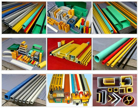 上圖是一些本公司生產的玻璃鋼拉擠型材,其中方管、圓管、橋架、花紋管等都是比較常用的類型。